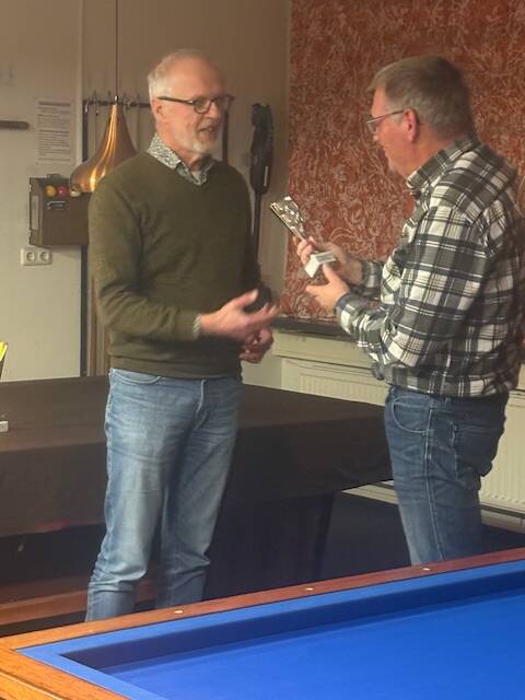 Na de wedstrijd werden hij en Gijs door onze voorzitter Harrie gehuldigd en kregen beiden een mooie beker.